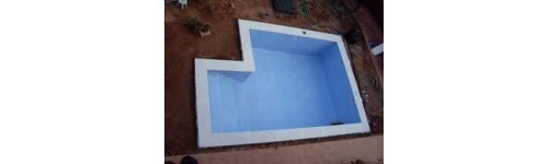 Colocación de Lámina de PVC en piscina terminas en varios colores de tonalidad azul e imitación gresite. Antiderrapante